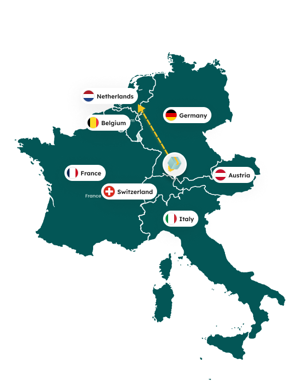 Zwischen vier Ländern gelegen, versenden wir Pakete direkt nach Deutschland, in die Schweiz, nach Österreich, Italien, Frankreich und in die Benelux-Staaten – alles von einem zentralen Standort aus.